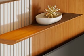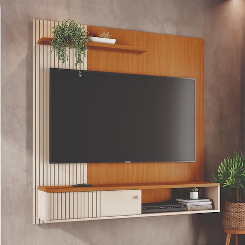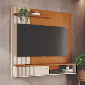 Painel de TV Suspenso Madetec Aurora, com design contemporâneo e acabamento refinado, ele traz elegância e funcionalidade à sua sala. Seu visual ripado em MDF frisado com porta deslizante e puxador pontual dourado fosco é o toque de sofisticação que o ambiente merece.