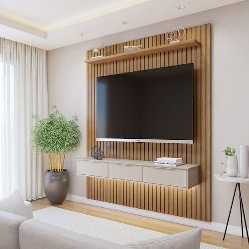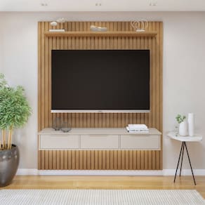 Com design sofisticado e moderno, o Painel Suspenso 182 cm com Nicho Vitória 100% MDF é ideal para quem tem uma TV de grande porte e precisa de um painel espaçoso. Feito com MDF de alta qualidade, este painel é resistente e conta com um nicho extra para organizar eletrônicos e itens decorativos. Perfeito para quem deseja melhorar o espaço e dar um toque de elegância ao ambiente, ele é ideal para salas de estar ou home theaters, acomodando TVs de até 75 polegadas, uma fita de LED embutida proporciona um toque moderno e uma iluminação aconchegante.