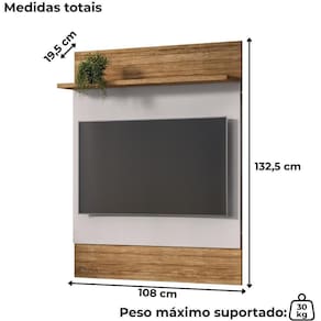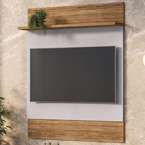 Painel Suspenso Guaratuba, composição atual com frisados que trazem um novo ar para sua sala. Estrutura em MDP/MDF (15/25mm) com acabamento em pintura UV texturizada. Possui frisos decorativos na parte superior e inferior, painéis sobrepostos (MDF 15mm), prateleira superior (MDP 25 mm) e passa fios. Suporta TVs de até 48 polegadas com segurança. Fixação por meio de parafusos. Este produto será entregue em 1 volume.