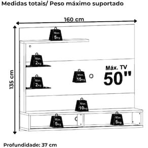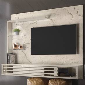 Painel Suspenso Frizz Select, uma peça que une design sofisticado e praticidade. Estrutura em MDP 15/25mm (base 15mm e prateleira/frisos/tampo 25mm), capacidade para TVs de até 50 polegadas (suporta até 44 kg distribuídos). Equipado com 2 portas frisadas de sobreposição com sistema de trilho plástico e puxadores em plástico. Conta ainda com passa-fios central, 1 prateleira superior com luminária de LED embutida e 2 prateleiras laterais em vidro (de 5 mm). Acabamento em pintura UV texturizada (fosca e brilho). Este móvel chegará separado em 02 volumes.