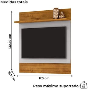 Painel Suspenso Angra, composição moderna com detalhes frisados que transformam sua sala. Estrutura em MDP/MDF (15/25mm) com acabamento em pintura UV texturizada. Possui frisos decorativos na parte superior e inferior, painéis sobrepostos (MDF 15mm), prateleira superior (MDP 25 mm) e passa fios. Suporta Tvs de até 50 polegadas com segurança. Fixação por meio de parafusos. Este produto será entregue em 1 volume.