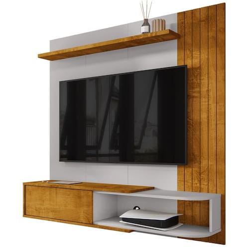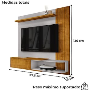 Painel Suspenso Paraty, design orgânico que complementa seu lar. Estrutura em MDP/MDF (15/25mm) com acabamento em pintura UV texturizada. Possui porta basculante, dobradiças metálicas, prateleira superior (25mm), nicho lateral, tampo curvo sobreposto e frisados laterais decorativos (MDF 15mm baixo relevo). Suporta Tvs de até 55 polegadas com segurança. Fixação por meio de parafusos. Este produto será entregue em 1 volume.