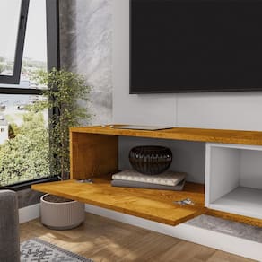Painel Suspenso Paraty, design orgânico com porta basculante e detalhes frisados que valorizam sua sala.