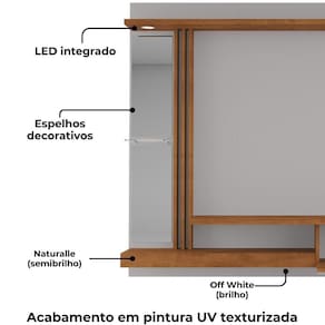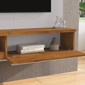 Painel Suspenso Denver, design moderno e elegante para seu lar. Estrutura em MDP 15 mm (tampo e prateleira superior 25 mm) com acabamento em pintura UV texturizada. Possui porta basculante com dobradiças metálicas e puxador em MDF (revestido), espelhos laterais decorativos, prateleiras funcionais (sendo uma em vidro 6 mm), passa fios. Destaque para o ripado decorativo (15 mm em baixo relevo) e luminária LED inclusa. Suporta TVs de até 55 polegadas com segurança. Fixação por meio de parafusos. Este produto será entregue em 1 volume.