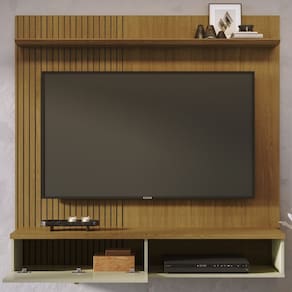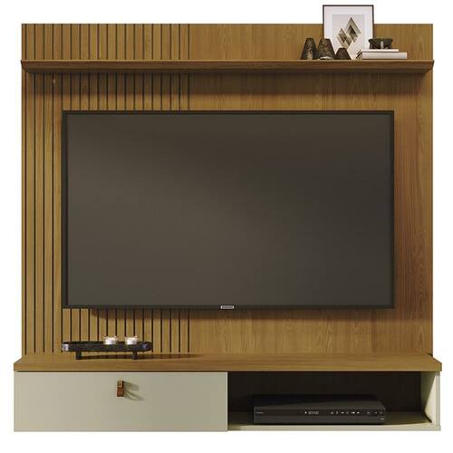 Painel Suspenso Iris, com design funcional e detalhes frisados que valorizam o seu ambiente. Estrutura em MDP 15mm, (base/porta 15mm e tampo/prateleira 25mm). Composto por porta basculante com dobradiças metálicas, nicho aberto, prateleira superior com borda chanfrada e passa fios. Destaque para o detalhe lateral Frisado de baixo relevo (em MDF 12mm). Puxador que simula couro natural (em plástico) com acabamento fosco. Acabamento em pintura UV texturizada fosca e brilho. Este móvel chegará em sua casa separado em 01 volume.