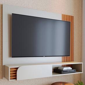 Painel Suspenso Jurerê 1.36, o charme do ripado com a leveza do design suspenso. Estrutura em MDP/MDF (12 e 15 mm) com acabamento em pintura UV texturizada. Conta com frisos laterais decorativos, porta basculante usinada com dobradiças metálicas e detalhe curvo junto ao ripado (20mm em pintura PU) e amplo nicho aberto com passa fios embutido. Suporta TVs de até 55 polegadas com segurança. Este produto chegará em sua casa separado em 1 volume.