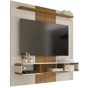 Painel Suspenso Leme, para ambientes modernos e funcionais. Estrutura em MDP (15mm) com acabamento em pintura UV texturizada. Possui tampo, prateleiras (inferior em MDP 25mm) e passa fios, destaque para detalhe de impressão 3D no MDP, imitando Ripado de madeira. Suporta Tvs de até 60 polegadas com segurança. Fixação por meio de parafusos. Este produto será entregue em 1 volume.