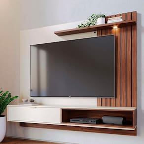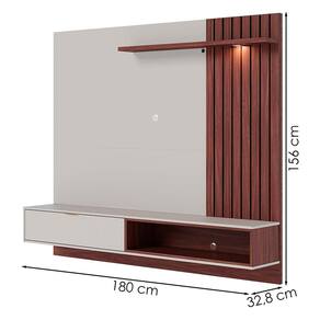 MDPPainel Suspenso Tocantins 1.8, combina design sofisticado e funcionalidade para transformar sua sala. Estrutura em MDP (25 e 15 mm) com acabamento em pintura UV texturizada. Composto por porta basculante, puxador metálico (fosco), prateleira com luminária LED, detalhe lateral frisado (baixo relevo) e passa fios. Suporta TVs de até 65 polegadas com segurança. Este produto será entregue em 2 volumes.