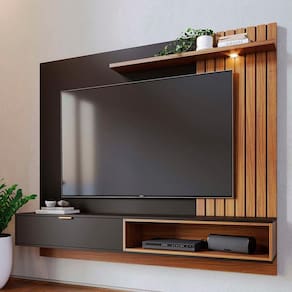 Painel Suspenso Tocantins 1.8, combina design sofisticado e funcionalidade para transformar sua sala. Estrutura em MDP (25 e 15 mm) com acabamento em pintura UV texturizada. Composto por porta basculante, puxador metálico (fosco), prateleira com luminária LED, detalhe lateral frisado (baixo relevo) e passa fios. Suporta TVs de até 65 polegadas com segurança. Este produto será entregue em 2 volumes.