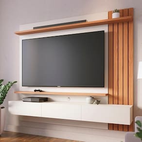 Painel Suspenso Juriti 1.8, combina design sofisticado e funcionalidade para transformar sua sala. Estrutura em MDP (25, 15 e 12 mm), conta com acabamento em pintura UV texturizada. Possui 3 portas basculantes, 2 prateleiras, design frisado (baixo relevo) e passa fios incluso. Suporta TVs de até 70 polegadas com segurança. Este produto será entregue em 3 volumes.