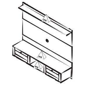 Peso suportado: Tampo e nicho 5Kg cada / Prateleira: 2Kg