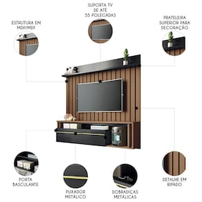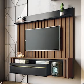 Se está pensando em inovar a decoração da sua casa, o Painel TV 55 Pol 160cm Bancada Suspensa Self Preto/Castanho, da HB Móveis é ideal para você, confira!