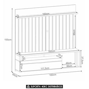 Peso Suportado Distribuído: 40 kg Distribuídos.