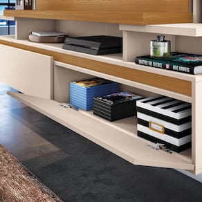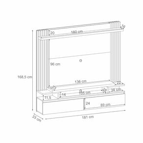O Painel TV 55 Pol 181cm Bancada Suspensa Aimi Cinamomo/Off White é a escolha ideal para quem deseja um móvel funcional. Suporta TVs de até 55 polegadas, podendo ser posicionada sobre o tampo de 40mm ou embutida no painel. As laterais contam com um ripado decorativo em MDF de 15mm, agregando elegância e sofisticação ao ambiente. Além disso, possui duas luminárias LED que destacam o design do móvel, proporcionando um efeito de iluminação aconchegante. A prateleira superior possui espessura reforçada de 37mm, garantindo mais resistência, durabilidade e um acabamento perfeito. Conta também com duas portas basculantes com dobradiças metálicas, conforto e praticidade para armazenar objetos com segurança e facilidade. O produto é fabricado em MDP/MDF e possui acabamento em pintura UV, garantindo mais qualidade, durabilidade e resistência para o móvel. Gostou? Garanta o seu!