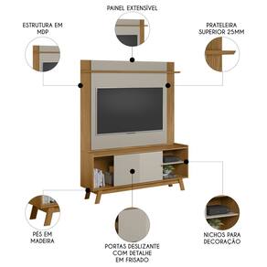 Painel TV 55 Pol Lana e Rack 160cm Arum Nature/Off Flex L06 - Mpozenato