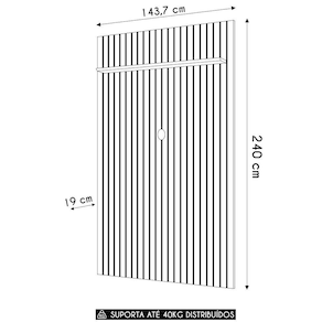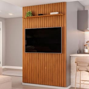 Dê um toque de elegância e modernidade à sua casa com o Painel TV 60 Pol 143cm Suspenso Ripado Noah D04 Freijó, da Mpozenato. Ele é a escolha perfeita para complementar seu espaço, tornando-se o centro das atenções em sua Sala de Estar.Com capacidade para suportar Tvs de até 60 polegadas, este Painel permite que você escolha a TV ideal para aproveitar o melhor do seu entretenimento, sem preocupações. Sua estrutura é composta por peças ripadas de MDF 15mm com acabamento em pintura UV, proporcionando alta resistência e durabilidade ao móvel. Conta com uma prateleira de 25mm com borda chanfrada, que pode ser instalada tanto na parte superior quanto na inferior e é ótima para exibir objetos decorativos com destaque. Além disso, o Painel Ripado dispõe de passa-fios para facilitar a organização e esconder os cabos, mantendo seu ambiente sempre limpo e organizado. Não perca mais tempo, adicione o Painel Para TV ao seu carrinho. Especificações Dimensões do ProdutoLargura: 143,7 cm. Altura: 240 cm. Profundidade: 19 cm. Peso: 47 kg. Outras medidas: (L x A) Espaço para TV: 143 x 200 cm. Características do ProdutoMaterial da estrutura: MDP/MDF. Espessura das Chapas: 15mm/25mm. Acabamento: Pintura UV. Escala de Brilho: Brilho/Fosco. Peso Suportado: 40 kg distribuídos. Suporta TV de até: 60 Polegadas. Possui Portas: Não. Possui Gavetas: Não. Possui Prateleiras: Sim. Quantidade de Prateleiras: 1 Prateleira. Material da Prateleira: MDF 25mm. Possui LED: Não. Possui Nicho: Não. Possui Passa-Fios: Sim. Diferenciais: - Design moderno.- Painel ripado.- Prateleira de 25mm com borda chanfrada.- Bordas em PVC e melamina.Sistema de Montagem: Parafusos/Cavilhas. Manual de Montagem: Sim. Complexidade da Montagem: Média. Volumes: 2 Volumes. Conteúdo da Embalagem: 1 Painel. do Fabricante: 90 dias contra defeito de fabricação. Montagem: Recomendamos que seja feita por um . Recomendação de Limpeza: Utilize pano levemente úmido. Observações importantes- Produto para uso residencial em ambiente interno, não devendo ficar exposto diretamente ao sol, calor e umidades excessivas.- Pode haver alguma diferença de tonalidade entre a imagem e o produto real, por conta do tratamento de imagens e a calibração de cores do seu monitor.- As imagens são meramente ilustrativas, não acompanham objetos de decoração e eletrônicos.- Confira o estado da embalagem, não devendo assinar o comprovante em caso de danos.- Não asseguramos, no ato da , por subir escadas/elevadores, pelo transporte por guincho em apartamentos ou montagem, desmontagem e instalações. Eventuais despesas são por conta do comprador.- Confira as dimensões do produto e certifique-se de que passará normalmente por supostos elevadores, portas, escadas e/ou corredores de sua residência.