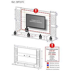 *Devido as variações de tamanho dos televisores no mercado, sugerimos que verifique as medidas da sua e compare com o painel antes de efetuar a compra.