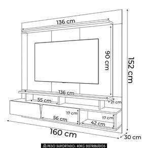Painel TV 60 Pol 160cm Bancada Suspensa Zenith Off/Cinamomo - HB Móveis