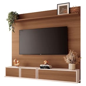 O Painel TV 70 Pol 180cm Bancada Suspensa Max Off/Castanho, da HB Móveis é composto por módulos e linhas retas, oferecendo uma estética contemporânea e clean.