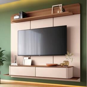 Com capacidade para TVs de até 70 polegadas, é ideal para transformar salas de estar em espaços modernos e confortáveis. Seu design combina de forma harmoniosa linhas retas com cantos arredondados, inspirado nas tendências atuais do design orgânico. A Bancada Suspensa oferece um efeito visual leve, ao mesmo tempo em que proporciona espaço funcional para organizar seus eletrônicos e acessórios. As duas portas basculantes, equipadas com dobradiças metálicas e sistema de abertura fecho toque, garantem praticidade e sofisticação, além de otimizar o uso do espaço. Esse sistema de fechamento garante que o móvel tenha uma aparência clean e sem puxadores, mantendo a estética do ambiente impecável. O Painel Com Bancada é produzido com MDP e MDF, nas espessuras de 25mm e 15mm, conferindo robustez e durabilidade. A prateleira superior de 25mm, adiciona uma camada extra de resistência, sendo perfeita para apoiar objetos decorativos ou outros itens que complementem a decoração. O Painel de TV é a escolha perfeita para quem deseja um móvel de destaque, que une design contemporâneo com praticidade e resistência.
