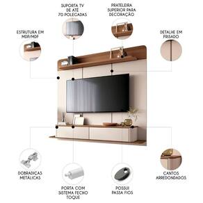 Este Painel TV 70 Pol 180cm Bancada Suspensa Gava H01 Off/Castanho, da Mpozenato foi projetado para quem busca sofisticação e funcionalidade em sua Sala de Estar.