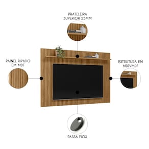 Características do Produto Material da Estrutura: MDP/MDF. Espessura das Chapas: 15mm/25mm. Acabamento: Pintura UV. Escala de Brilho: Fosco. Peso Suportado: 43 kg Distribuídos. Suporta TV de até: 75 Polegadas. Possui Portas: Não. Possui Gavetas: Não. Possui Prateleiras: Sim. Quantidade de Prateleiras: 1 Prateleira. Possui LED: Não. Possui Passa-Fios: Sim. Diferenciais: - Design moderno. - Painel com ripado em MDF. - Prateleira superior 25mm. - Com passa fios. Sistema de Montagem: Parafusos/Cavilhas/Minifix. Manual de Montagem: Sim. Complexidade da Montagem: Baixa. Volumes: 1 Volume. Conteúdo da Embalagem: 1 Painel. Garantia do Fabricante: 90 dias contra defeito de fabricação. Montagem: Recomendamos que seja feita por um profissional. Recomendação de Limpeza: Utilize pano levemente úmido.