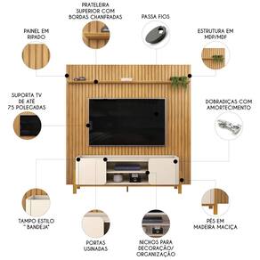 O Painel TV 75 Pol Ripado 250cm e Bancada Chest D04 Off/Cedro, da Mpozenato, une elegância, funcionalidade e sustentabilidade, transformando sua Sala de Estar em um ambiente moderno e acolhedor.