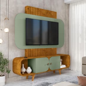 Além dos dois nichos laterais para acomodação de aparelhos e das portas, o painel é ideal para TV de até 75 Polegadas, o suporte para TV acompanha o painel, tornando completo.