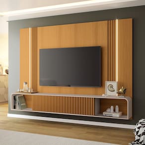 O Painel TV 85 Pol 219 cm Bancada Suspensa Emily Cinamomo/Off White é a escolha perfeita para quem busca uma solução elegante e funcional para organização e decoração. Seu design luxuoso se destaca pela iluminação LED no painel e pelos detalhes canelados nas laterais e nas duas portas, adicionando um toque de sofisticação e modernidade à peça. Além disso, possui portas de correr com trilho em alumínio, garantindo mais funcionalidade, resistência e durabilidade ao movimento. O painel para TV de até 85 polegadas conta também com cantos arredondados, garantindo mais segurança e um design harmônico. Ele é fabricado em MDP e MDF com espessura de 15mm o que promete resistência e qualidade ao produto. E tem mais: o detalhe canelado nas portas elimina o uso de puxador deixando um design ainda mais atual. Com certeza esse painel Emily vai transformar a sua sala de estar. Afinal, sua casa merece conforto e estilo!