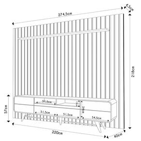 Dimensões dos Produtos Rack Áureo: 220 x 57 x 40 cm. Painel One: 274,5 x 218 x 4,5 cm. Peso: 143 kg total.