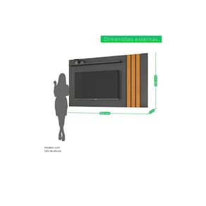 Detalhe ripado Prateleira de 25mm Espaço Tv:1820mmx930mm(LxA) Acompanha suporte Tv