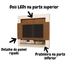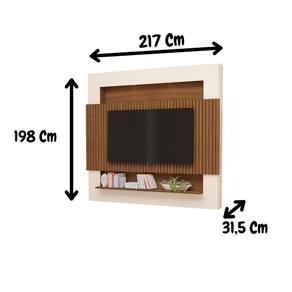 Painel de TV Suspenso com Centro Ripado e Dois LEDs Superiores Riviera em MDF para TV até 75 polegadas - Carvalho New com Off White. Transforme sua sala de estar em um espaço sofisticado e moderno com o Painel de TV Suspenso Riviera. Projetado para acomodar TVs de até 75 polegadas, este painel combina elegância, funcionalidade e praticidade, trazendo um toque contemporâneo à decoração do seu ambiente. Design Moderno com Acabamento Ripado: O Painel Riviera se destaca pelo seu design sofisticado e contemporâneo, com um centro ripado que adiciona textura e profundidade à decoração. O acabamento em carvalho new traz um toque natural e acolhedor, enquanto o off white cria um contraste elegante e suave, ideal para quem busca um visual moderno e ao mesmo tempo aconchegante. Iluminação LED Integrada: Com dois LEDs superiores estrategicamente posicionados, o Painel Riviera oferece uma iluminação suave e indireta, realçando a beleza do painel e criando uma atmosfera envolvente e relaxante. A iluminação LED não apenas destaca o centro ripado, mas também proporciona uma experiência de visualização confortável, perfeita para momentos de lazer e entretenimento. Funcionalidade e Organização: Além de sua beleza estética, o Painel Riviera foi projetado para oferecer praticidade. Com prateleira integrada, ele permite organizar dispositivos eletrônicos como decodificadores, consoles de videogame, e caixas de som, além de espaço para objetos decorativos que personalizam e valorizam ainda mais o ambiente. A disposição inteligente dos compartimentos facilita a organização dos cabos, mantendo tudo limpo e organizado. Qualidade e Durabilidade: Construído em MDF de alta qualidade, o Painel de TV Riviera oferece durabilidade e resistência, suportando com segurança TVs de até 75 polegadas. O acabamento em pintura UV protege a superfície contra riscos e manchas, mantendo a aparência impecável do painel ao longo do tempo. Instalação Suspensa Prática: O design suspenso do Painel Riviera não apenas proporciona um visual moderno e sofisticado, mas também facilita a limpeza do ambiente e otimiza o espaço disponível. A instalação é prática e segura, com um sistema de fixação robusto que garante a estabilidade do painel na parede. Versatilidade para Diversos Ambientes: Com sua combinação de cores em carvalho new e off white, o Painel Riviera é versátil o suficiente para complementar diversos estilos de decoração, desde os mais clássicos até os mais contemporâneos. Seja em uma sala de estar, home theater, ou até em escritórios, este painel é a escolha ideal para quem deseja agregar elegância e funcionalidade ao espaço. Adicione um toque de modernidade e requinte ao seu lar com o Painel de TV Suspenso com Centro Ripado e Dois LEDs Superiores Riviera. Um produto que alia design, funcionalidade e qualidade, proporcionando um ambiente mais organizado, acolhedor e sofisticado para você e sua família. IMAGENS MERAMENTE ILUSTRATIVAS.