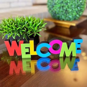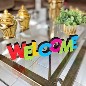 Palavra Welcome Em Mdf Estampa DecoryouQuantidade: 1 peçaMaterial: mdf estampa.Tamanho: 26,5 x 7 x 1,5 cmEstão entre as matérias-primas de grande qualidade descobertas pelas indústrias de móveis e decoração. Sua textura e composição a classificam como bom recurso para realizar diversos projetos personalizados.Este é um produto especial, de alta qualidade, desenvolvido por nossos designers criativos e parceiros. As peças foram criadas especialmente para compor a decoração de diferentes ambientes, alinhando beleza e sofisticação.Descrição técnica: a linha decoryou possui diversos desenhos, contemplando formas arrojadas e criativas. O mdf é adquirido de empresas que atendem aos padrões éticos das leis de reflorestamento, a estampa é um papel adesivo, ou seja, trabalhamos com o melhor material e atendemos as necessidades do meio ambiente. A decoryou inova trazendo ao mercado, um produto de alta qualidade e usabilidade.Decoryou é uma marca do grupo tamako, uma empresa de 35 anos, que atua na fabricação de diversos produtos, diferenciando-se pela sua qualidade, por este motivo, você pode confiar e comprar direto de quem fabrica. (fabricação própria).A validade é indeterminada, porém a limpeza correta é fundamental para a durabilidade. Cuidados: evite molhar ou deixar em local úmido. Se exposto ao sol, o mdf e a estampa podem escurecer ou desbotar.Limpeza: Não molhar e não usar produtos químicos ou adesivos.O universo da decoração está cada vez mais forte e potencializado pela criatividade dos profissionais especializados em criar peças e produtos incríveis. Com isso, cada vez mais investimos em tudo que é possível para tornar esses produtos marcantes.Com os produtos DECORYOU a qualidade e a criatividade são fatores decisivos para se destacar. Marca: Decoryou