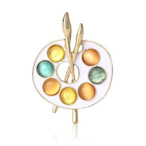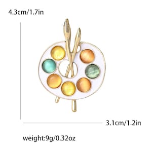 Material: Liga Tamanho: 3,1 x 4,3 cm Peso: 9 g Quantidade: você obterá todas as peças em quantidade igual à primeira foto principal. Design da paleta ShoArt: apresenta uma paleta clássica de pintor com manchas coloridas de tinta esmaltada e dois pincéis, simbolizando criatividade e arte. Material de liga durável: feito de liga premium com detalhes em esmalte, garantindo cores vibrantes e brilho duradouro. Tamanho elegante: medindo 3,1 x 4,3 cm e pesando 9 g, leve e atraente para uso diário. Estilo versátil: funciona como broche, alfinete de blusa, alfinete de lapela ou crachá, adequado para jaquetas, casacos, vestidos, chapéus ou bolsas. Acessório unissex: perfeito para artistas, estudantes e amantes da moda que apreciam joias exclusivas e artísticas.