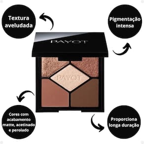 A paleta possui 2 cores no acabamento matte, 2 cores acetinadas e 1 perolada para produzir diversos tipos de looks, do dia a dia à festa. O estojo possui espelho e design sofisticado para completar a experiência. Fórmula com textura aveludada, pigmentação intensa e longa duração.