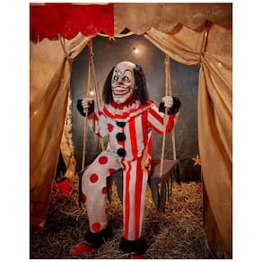 Olá meninos e meninas e criaturas de todas as formas e tamanhos. Toothy, o Palhaço, está aqui para comer . . . Quero dizer, cumprimente você com seu sorriso de renome mundial. Balançando despreocupadamente de cidade em cidade com qualquer circo que o leve, Toothy alimenta sua fome de risos e muito mais desndo os espectadores com seu sorriso de sorte. No entanto, recomendamos manter distância e guarda, ou este palhaço canibal estará usando seus ossos para um palito de dente antes que você perceba. Você não quer estar na primeira fila quando Toothy começar seu próximo ato Adicione este Toothy the Clown Animatronic à sua tela de Halloween e veja como ele atormenta os hóspedes com seu apetite cruel. Os movimentos oscilantes e as linhas de voz aterradoras realmente dão vida a esse animatronic e ele certamente será o prato principal entre o resto da sua decoração de Halloween.