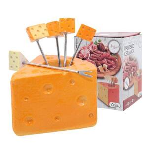 Paliteiro queijo com pegadores. Em formato de fatia de queijo, vem com 5 pegadores, o paliteiro ceramica é um item indispensável para ser utilizado em petiscos, aperitivos, churrascos ou reuniões com a galera. Além de prático e util, vai deixar sua cozinha ou área de churrasco linda e elegante. Especificações: material: ceramica medida paliteiro: altura 6cm x largura 8cm medida do pegador: 9cm Marca: Shopdapesca