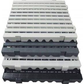 podem ser encaixados lado a lado e recortados, até que a área escolhida seja completamente coberta. Atendem integralmente às normas da anvisa agência nacional de vigilância sanitária , para estoque de produtos que não podem ser contaminados, devido contato com o solo. Facilmente higienizáveis, sua qualidade permanece inalterada à ácidos, gorduras, solventes e odores. Seu design permite que a água escorra entre as suas calhas, sem perder a sua resistência. Utilização: