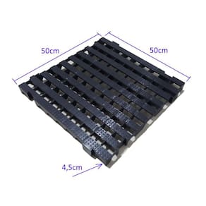 Estrado Plástico Preto em PP Polipropileno nas medidas de 4,5x50x50cm.