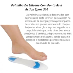 As Palmilhas action são desenhadas com ranhuras na parte inferior, que auxiliam na dissipação da energia gerada pelo impacto, fazendo com que no momento do choque, haja uma absorção e logo em seguida uma propulsão do impacto da pisar. Seu ajuste anatômico é perfeito, adaptando-se aos mais variados tipos de sapatos. Tendo ogiva no calcâneo e metatarsos promovendo alívio acentuado da pressão.