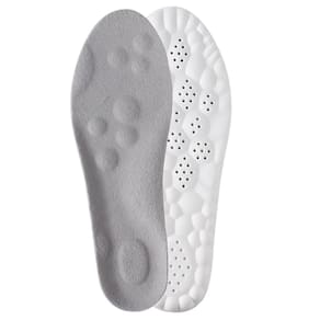 Alta absorção de impacto, a base em borracha flexível e cápsulas de gel ajudam a distribuir melhor a pressão dos passos.