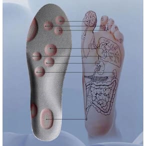 Alta absorção de impacto, a base em borracha flexível e cápsulas de gel ajudam a distribuir melhor a pressão dos passos.