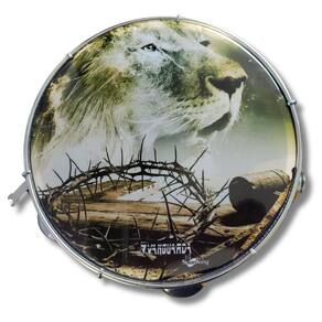 Pandeiro 10 ABS Branco Pele Sintética Leão e Coroa Spanking