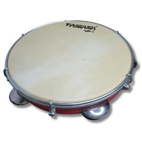 Pandeiro 10 Abs Vermelho Pele Couro Natural Vanguarda