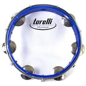 - pandeiro injetado em abs azul com pele nailon transparente. - com 5 pares de platinelas. - altura: 4,5 cm - peso 0,578kg - fabricante: torelli - modelo: tp348 az - acompanha chave de afinação.