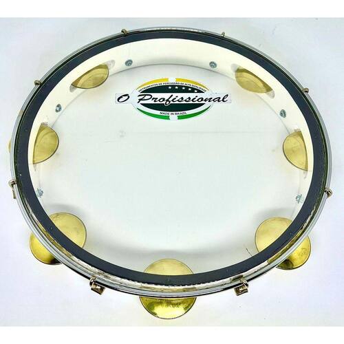 Pandeiro 12 polegadas, marca O Profissional, corpo em madeira maciça revestido com formica Branco, 07 jogos de platinelas de latão, 08 tarrachas para afinação, pele Cristal, acompanha Capa nylon600 almofadada e chave de afinação, peso do pandeiro 700 gramas