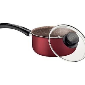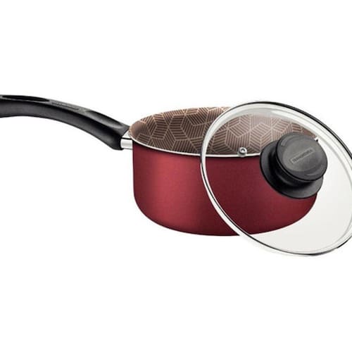 Para preparar aquela refeição saborosa para seu almoço e da sua família, a panela Tramontina Paris em alumínio com revestimento interno e externo em antiaderente Starflon Max vermelho com tampa de vidro 16 centímetros 1,5 litros é a ajudante ideal Ela é produzida em alumínio com espessura de 1,8 milímetros e conta com revestimento interno e externo em antiaderente Starflon Max, atributos que juntos, proporcionam um cozimento rápido e uniforme dos alimentos e evitam que eles grudem em sua superfície. A panela vem com tampa de vidro temperado com borda de aço e saída de vapor, o que auxilia a visualização dos alimentos e facilita o preparo. Para sua segurança, o cabo em baquelite antitérmico não aquece e oferece maior segurança durante o manuseio. Além de todas essas características, a panela ainda é muito fácil de limpar e pode ser levada à máquina de lavar, facilitando sua rotina. Uma panela com a qualidade Tramontina, que você já conhece e confia
