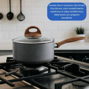 A Panela 16cm Ceramic Life Smart Plus Brinox na cor Granito é a escolha ideal para quem valoriza funcionalidade, saúde e um toque de sofisticação na cozinha. Com revestimento interno cerâmico antiaderente, ela permite preparar alimentos com menos gordura, sem grudar, garantindo uma limpeza muito mais prática. Seu design moderno e elegante na cor Granito se destaca em qualquer ambiente, unindo beleza e eficiência no dia a dia. O cabo antitérmico com toque soft proporciona maior segurança e conforto ao segurar, mesmo durante o preparo em altas temperaturas. Compatível com fogões a gás, elétrico, vitrocerâmico e por indução, é extremamente versátil para diferentes tipos de preparo. Além disso, é livre de PFOA, tornando-se uma excelente opção para quem busca uma alimentação mais saudável e consciente, sem abrir mão da durabilidade e da qualidade Brinox. Especificações Técnicas: Marca: Brinox Linha: Ceramic Life Smart Plus Modelo: Panela com tampa de vidro temperado Cor: Granito cinza escuro com efeito marmorizado Diâmetro: 16 cm Altura: 8 cm Capacidade: 1,55 Litros Comprimento total com cabo : 32 cm Material da panela: Alumínio com revestimento cerâmico antiaderente Revestimento interno: Cerâmico Mineral Resist livre de PFOA Revestimento externo: Pintura siliconada Material do cabo: Baquelite antitérmico Material da tampa: Vidro temperado com saída para vapor e borda em aço inox Compatibilidade com fogões: Gás, elétrico, vitrocerâmico e indução Marca: Não Informado Ean: 7898778880015