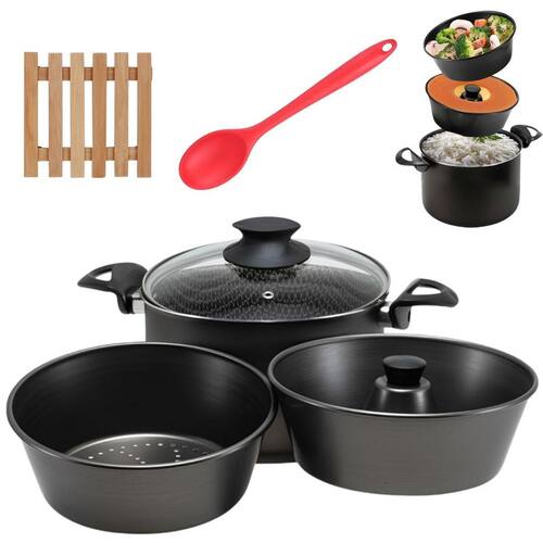 - 3 em 1 Funcionalidade: Cozinhe pudins, alimentos no vapor e em banho-maria com uma única panela. - Revestimento Antiaderente: Evita que os alimentos grudem, facilitando a limpeza e garantindo maior durabilidade. - Tampa de Vidro: Permite acompanhar o preparo dos alimentos sem perder calor, proporcionando controle e eficiência.