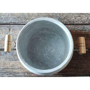 Ø Medidas Número 8 (8 litros aproximadamente) MaterialØ Pedra sabãoØ Alças em madeira Observação:* A panela precisa ser curada, processo este que é feito apenas uma vez, juntamente com a mercadoria irá um folheto explicativo. * Todo material em pedra sabão-após curado muda de cor ficando com uma tonalidade mais escura.* Fotos ilustrativas. Por ser artesanal as peças podem ter variações